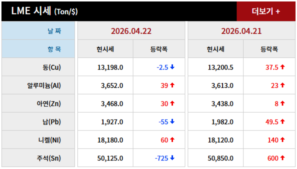 2026년 04월 22일 字 가격동향 페이지 정보 작성자 관리자 댓글 0건 조회 4회 작성일 26-04-23 07:03 본문 2026년 04월 22일 字 가격동향 목록 이전글2026년 04월 23일 字 가격동령 26.04.24 다음글2026년 04월 21일 字 가격동향 26.04.22 댓글목록 댓글목록 등록된 댓글이 없습니다.