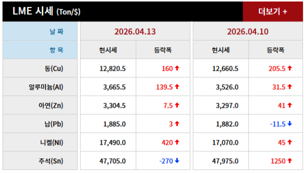2026년 04월 13일 字 가격동향 페이지 정보 작성자 관리자 댓글 0건 조회 9회 작성일 26-04-14 07:51 본문 2026년 04월 13일 字 가격동향 목록 이전글2026년 04월 14일 字 가격동향 26.04.15 다음글2026년 04월 10일 字 가격동향 26.04.11 댓글목록 댓글목록 등록된 댓글이 없습니다.