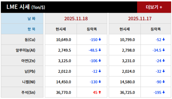 2025년 11월 18일 字 가격동향 페이지 정보 작성자 관리자 댓글 0건 조회 247회 작성일 25-11-19 07:06 본문 2025년 11월 18일 字 가격동향 목록 이전글2025년 11월 19일 字 가격동향 25.11.20 다음글2025년 11월 17일 字 가격동향 25.11.18 댓글목록 댓글목록 등록된 댓글이 없습니다.